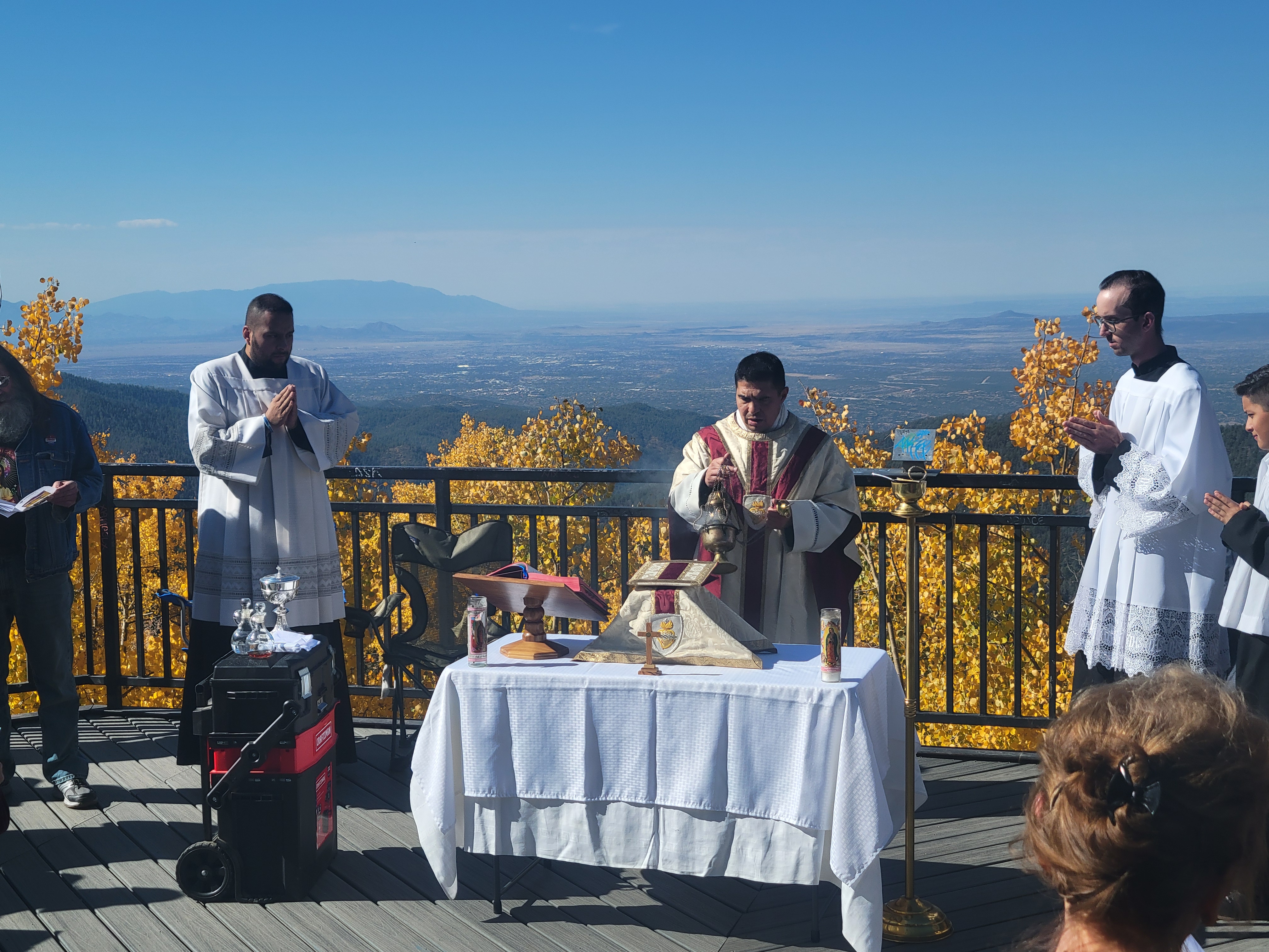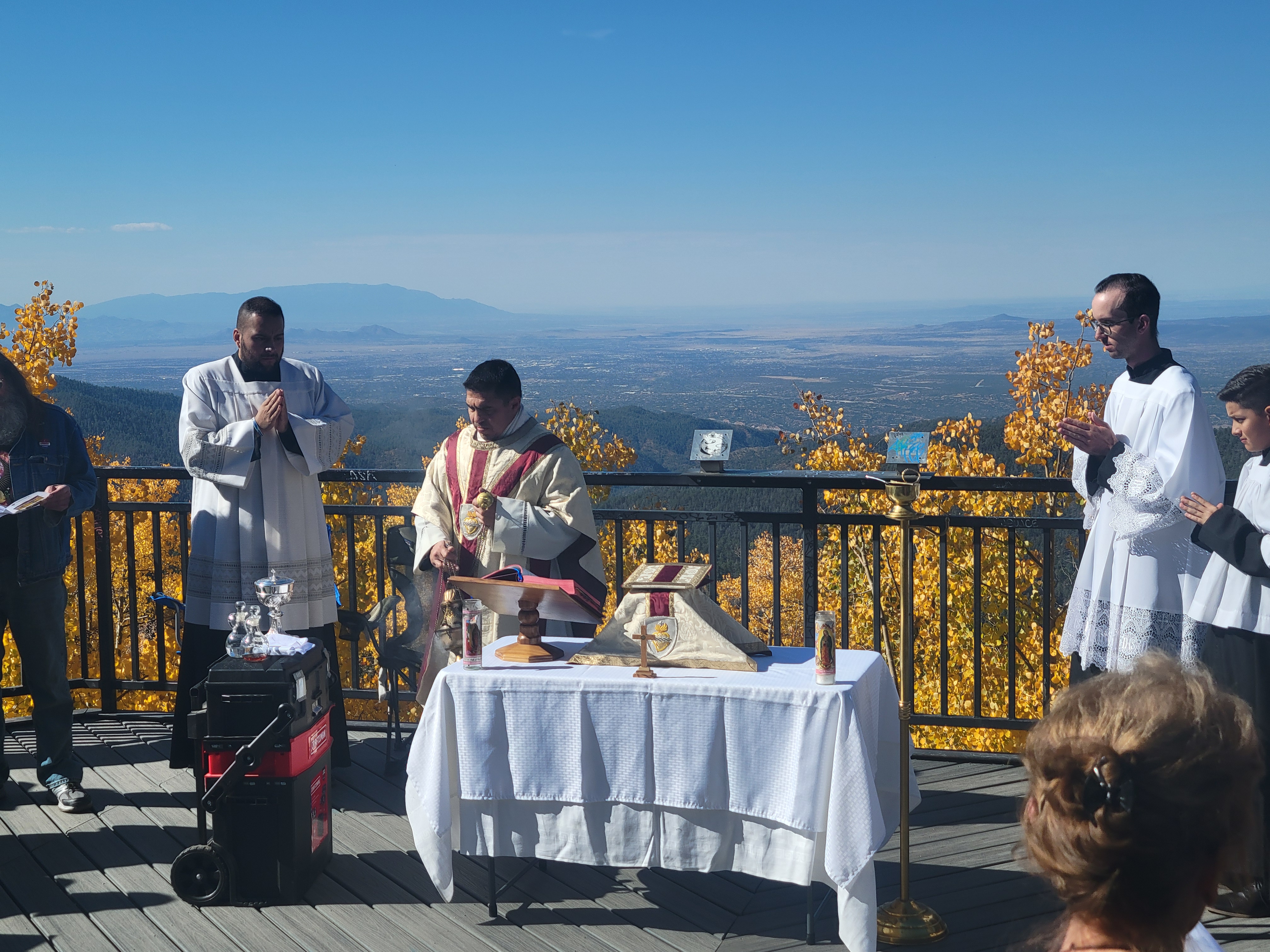 Fr. Adrian Sisneros, St. Joseph Parish, Cerrillos, officiated the Mass on the Mountain at Hyde Park Lookout on Oct 10, 2024