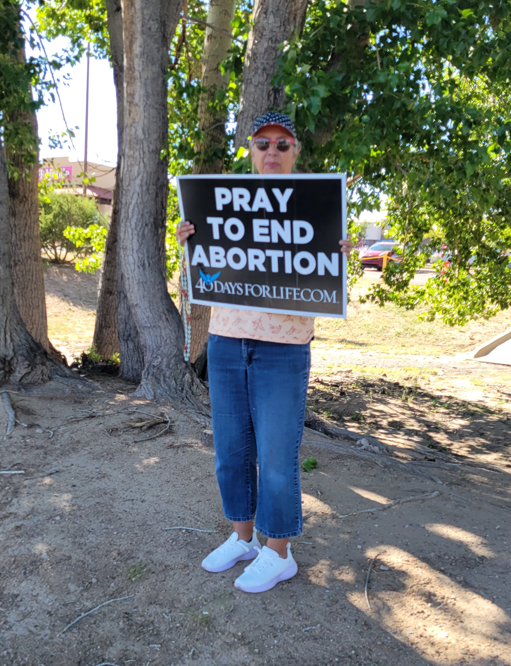 Elena outside Planned Parenthood in Santa Fe during Saturday's 9:30 Prayer Vigils