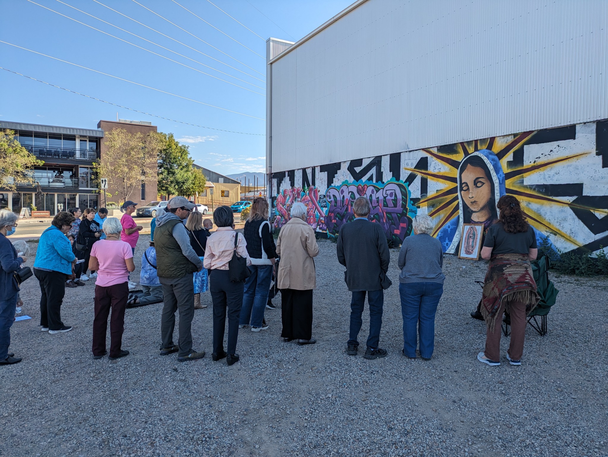 Over 20 people gathered to pray the rosary at Warehouse 21, a City of Santa Fe