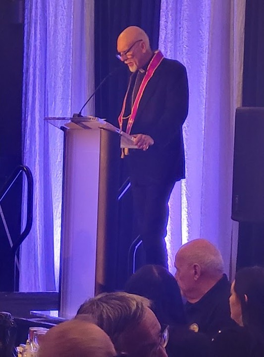 Father Larry Brito giving the Invocation Prayer at the Project Defending Life Gala in Albuquerque